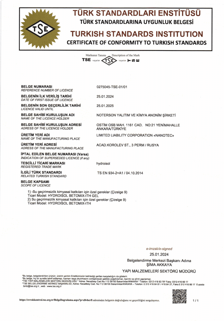 Hydroisol markası, su yalıtımı çözümlerinde mükemmelliği hedefleyen ve bu doğrultuda sürekli olarak yenilikçi teknolojiler geliştiren bir lider konumundadır. TSE sertifikası, ürünlerin belirli standartlara uygunluğunu onaylayarak, kullanıcılarına maksimum güven sağlar. Bu sertifika, Hydroisol’un ürünlerinin kaliteli malzemelerle üretildiğini ve su yalıtımında en üst düzey performansı sağladığını kanıtlar.