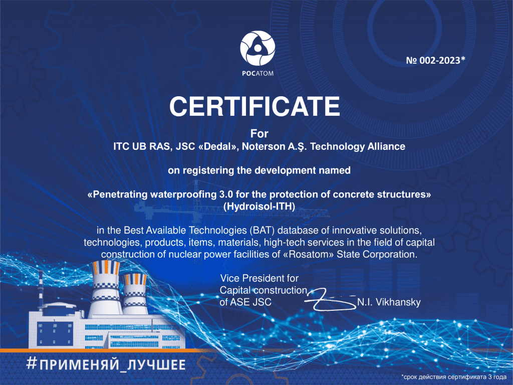 Rasatom Hydroisol Nükleer Santral Sertifikası